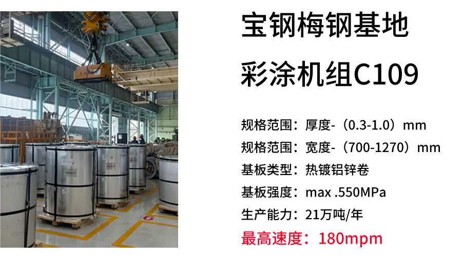 2025年7月中旬,寶鋼股份梅鋼基地冷軋廠新建彩涂機組C109(寶鋼內部機組編號)成功產出第一卷彩涂鋼板,這標志著該機組正式宣告投產。作為寶鋼股份的第七條彩涂機組,C109機組的成功落地,為寶鋼彩涂產品家族注入了新的活力與力量。