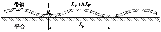 從翹曲的帶鋼切取一段置于平臺(tái)上,如將最短縱條視為一直線,最長(zhǎng)縱條視為一正弦波,以翹曲波形來(lái)表示板形,稱為翹曲度(急峻度),其中Rv表示波幅(浪高),Lv表示波長(zhǎng)(浪距)。
