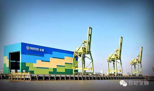 2014年建成的寶鋼全天候成品碼頭坐落于上海寶山濱江地區。這里有我們告別不久的好兄弟。隔江相望,你可以清晰地看見他披著艷麗的藍、黃、綠色彩涂板外衣。這三色代表藍天、大地、陽光,加之彩涂鋼板本身就是綠色建材,整座碼頭意在與自然環境和諧相處。