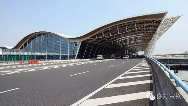 我跟浦東機場二期航站樓是在2006年認識的。每次出遠門的時候,都會看見這位老友。星月白的顏色,大鵬展翅的造型,寓意著上海的騰飛。而當初為了滿足它最長單跨140米的要求,寶鋼特別研制了新的鋼種S250,保證了材料的一次性連續性成型。